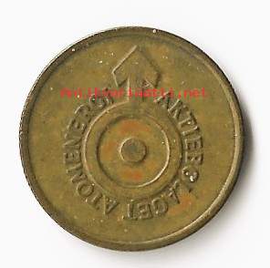 Atomenergi Aktiebolaget -poletti, joka on ruotsalainen historiallinen keräilyesine.Tyyppi: Poletti/rahake.Alkuperä: Ruotsi.Aihe: Atomenergi Aktiebolaget.