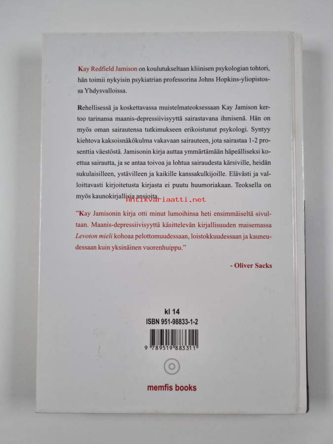 Muu(t) tekijä(t): Mirja RutanenAlkuteos: An unquiet mindAsiasanat: muistelmat, elämäkerrat, mielenterveyshäiriöt, ahdistus, psykologit, masennus, psykiatrinen hoito, potilaat, kaksisuuntainen mielialahäiriö, psykoosit, psykiatria, psykiatri, psykiatrisk vård, biografier, mentala störningar, memoarer, Depression, psykologer, patienter, ångest, psykoser, sairauskertomukset, bipolär sjukdom, sjukjournaler
