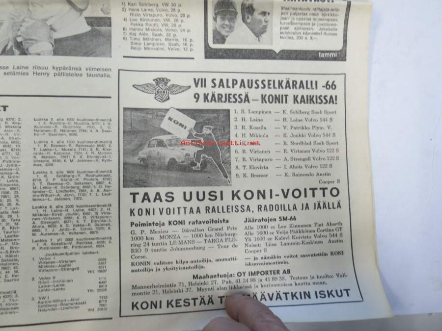Vauhdin maailma 1966 nr 5, sis. mm. seur. artikkelit / kuvat / mainokset; Mitä toivomme Keimolalta, Suuntana Artukainen - sata autoa ja risat, Ruissalon rataa ja