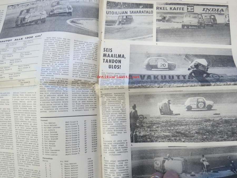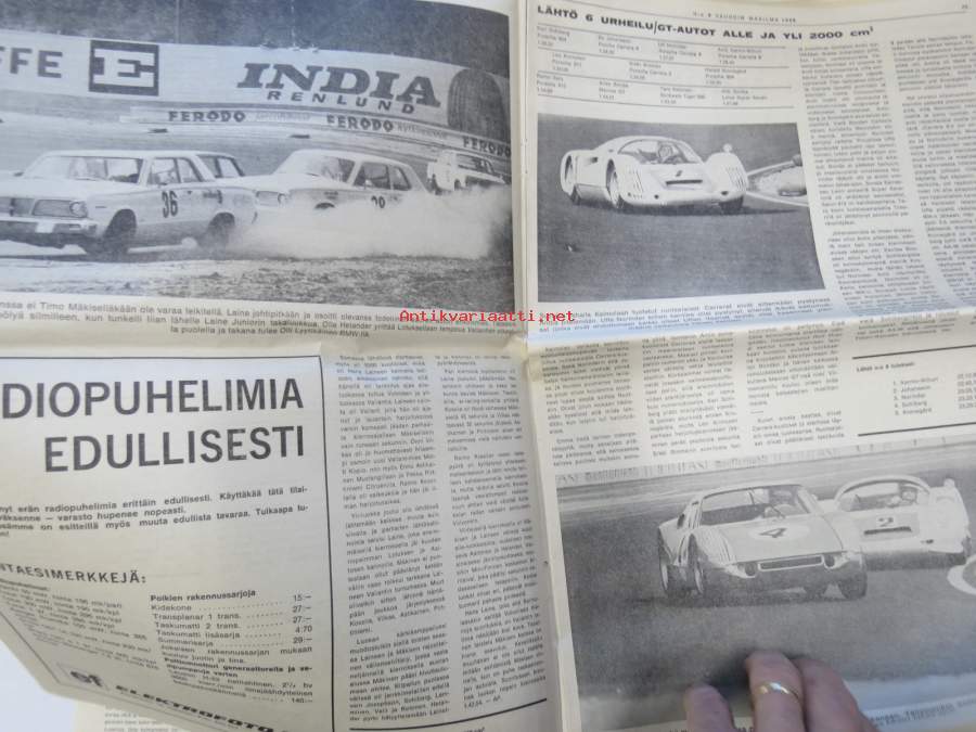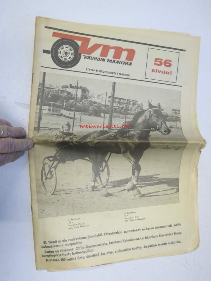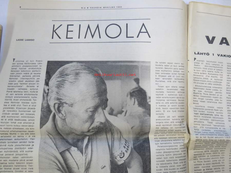 Vauhdin Maailma 1966 nr 6 -mm. Bruce McLaren Shapparal-Chervolet Ford 40 GT Shelby-Cobra Ferrari P 3 Porsche Carrera 6 Kaksivaihteisella komeimmat Kannut, Indiapolis 500, Helsingin vauhtikisat, Formulaluokat F2 ja F3, 3987 paikkaa auringossa, 8000 paikkaa keskiyön auringossa, Rata-SM, Chaparral menestyvä amerikkailainen, Formula 4 tuloillaan, 24 Le Mans 24 Mauri Salo kertoo, Barracuda Formula S koeajo, Itäralli - Rallye rankkasateessa, HMMK X 500-ralli tulokset, Vasenkätisten välienselvitys. 27 x 42 cm.