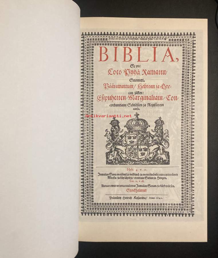 Biblia 1642 - Se on: Coco Pyhä Ramattu Suomexi. Pääramattuin hebrean ja grecan jälken: Esipuhetten/ marginaliain/ concordantiain/ selitösten ja registerein cansa