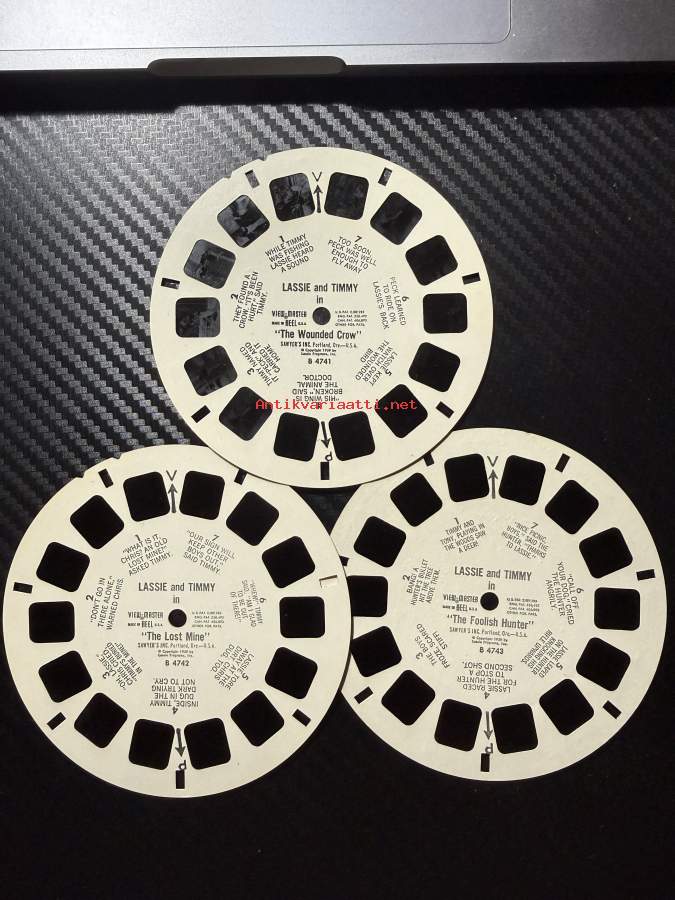 View-Master – Lassie and Timmy – The Wounded Crow / The Lost Mine / The Foolish Hunter – B4741 / B4742 / B4743 -sarja – reel / kuvakiekko