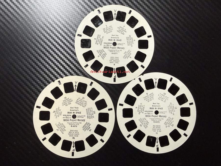 View-Master – America’s Man in Space – B6571 / B6572 / B6573 -sarja – reel / kuvakiekko