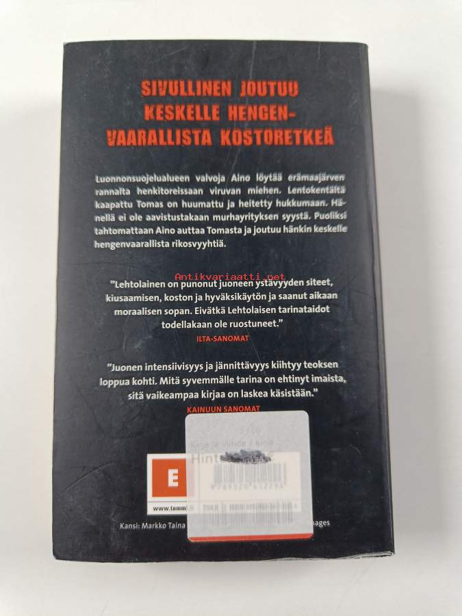 Hyvä. Tarkempi kuntoluokka: K3- ; Hieman rispaantumaa reunoilla ja kulmissa, hieman kulumaa, pienoista taitejälkeä kansissa, selkämyksessä yksi lukutaite, takana vanha hintalappu