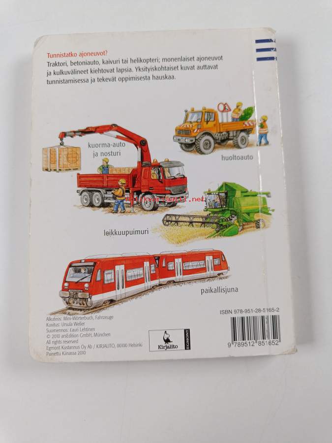 Muu(t) tekijä(t): Lauri LehtinenAlkuteos: FahrzeugeAsiasanat: lastenkirjallisuus, kulkuneuvot, suomenkielinen kirjallisuus, kuvasanakirjat, paksulehtiset kirjat, aukkokirjat