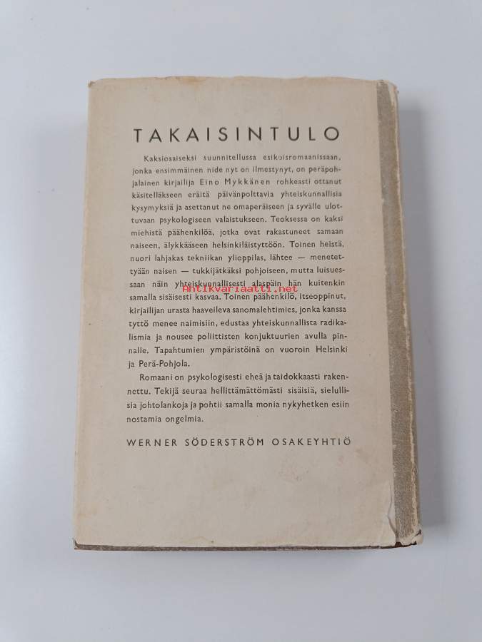 Hyvä. Tarkempi kuntoluokka: K3- ; Hieman kolhua kulmissa, hieman kulumaa, selkämyksessä hieman vinoutta. Kansipaperin kunto: kulumaa/pienehköjä repeämiä & tahraisuutta / ensimmäisellä tyhjällä sivulla kirjoitusta