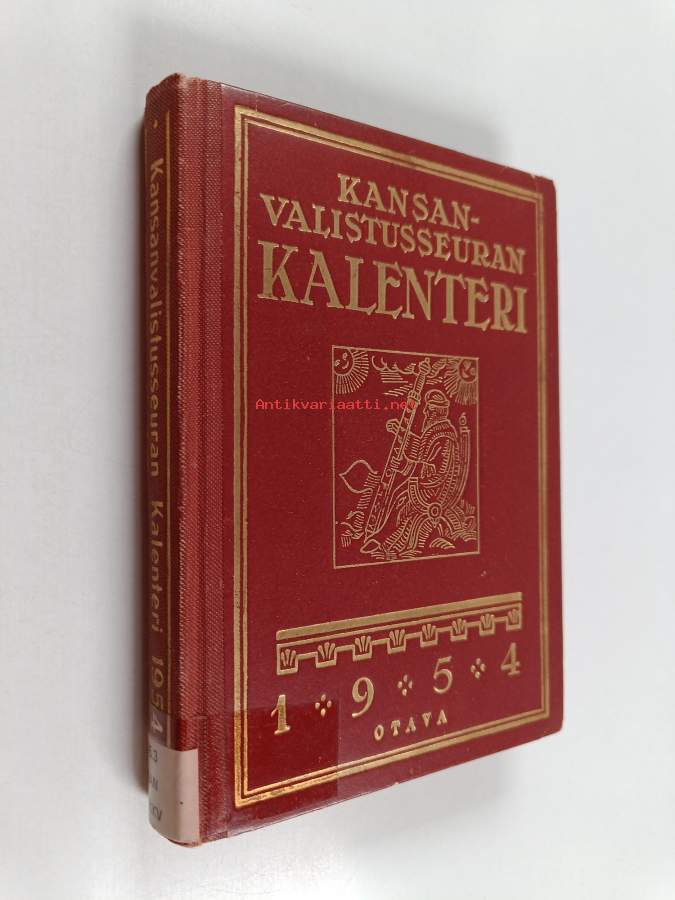 Kansanvalistusseuran Kalenteri 1919, sis. runsaasti mainoksia, artikkeleita, tilastotietoa, rautateitten ja postin kulku, virkamiehistö, puolueet,