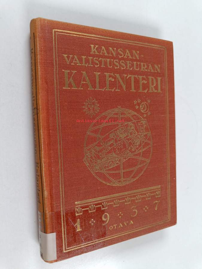 Kansanvalistusseuran Kalenteri 1919, sis. runsaasti mainoksia, artikkeleita, tilastotietoa, rautateitten ja postin kulku, virkamiehistö, puolueet,