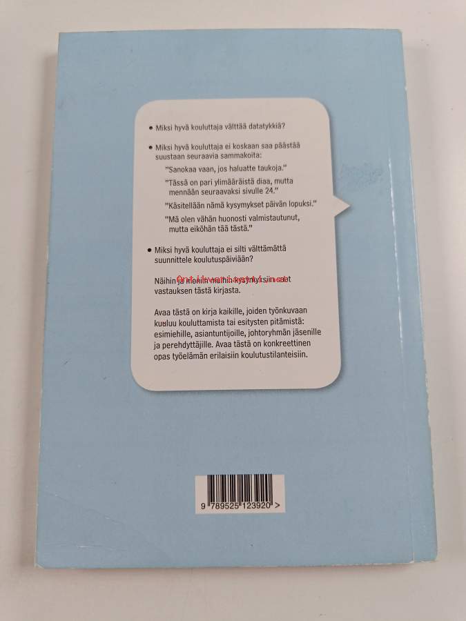 Merkinnät: omistajamerkintäAsiasanat: oppaat, koulutus, työelämä, itsetuntemus, vuorovaikutus, opettajat, opetusmenetelmät, sosiaaliset taidot, oppimistyylit, esiintymistaito, tilat, ilmaisutaito, esitykset, esiintyminen, aikuiskoulutus, didaktiikka, ryhmät, opetustilanne, kouluttajat, oppaat (teokset), ryhmädynamiikka, työpaikkakoulutus, esiintyjät, luokkatyöskentely, teaching, luennoitsijat, opetustilat, kouluttajakoulutus, aikuiskouluttajat, communication skills, Instruction
