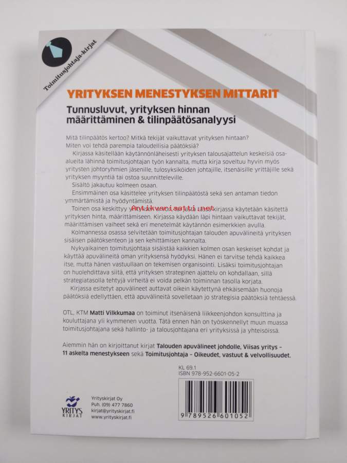 Sarja: Toimitusjohtaja-kirjat; ToimitusjohtajaAsiasanat: taloussuunnittelu, yritykset, yritystoiminta, johtaminen, päätöksenteko, talous, liiketalous, tilinpäätös, laskentatoimi, liiketoiminta, yritysstrategiat, hinnat, hinnoittelu, tulosjohtaminen, investoinnit, yrityskaupat, taloushallinto, riskienhallinta, analyysi, tunnusluvut, ulkoistaminen, taloudellinen ohjaus, arvonmääritys, kannattavuus, tilinpäätösanalyysi, arvo, strategiat, mittarit (mittaus), talousjohtajat