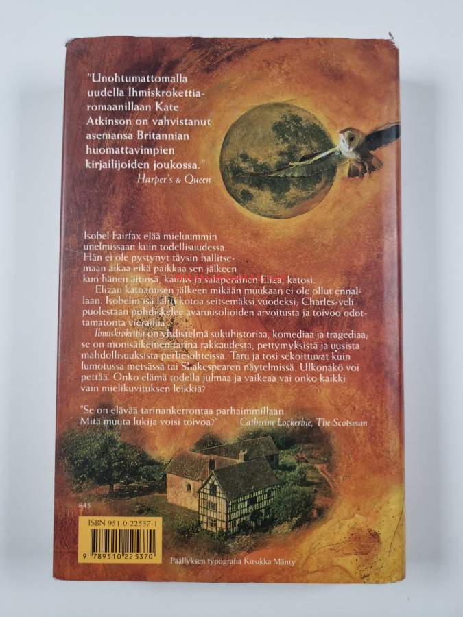Tyydyttävä. Hieman kulumaa, pienoista kolhua reunoilla ja kulmissa, kirjaston poistokirja, selkämyksessä hieman vinoutta. Kansipaperin kunto: jonkin verran kulumaa/pienoisia repeämiä