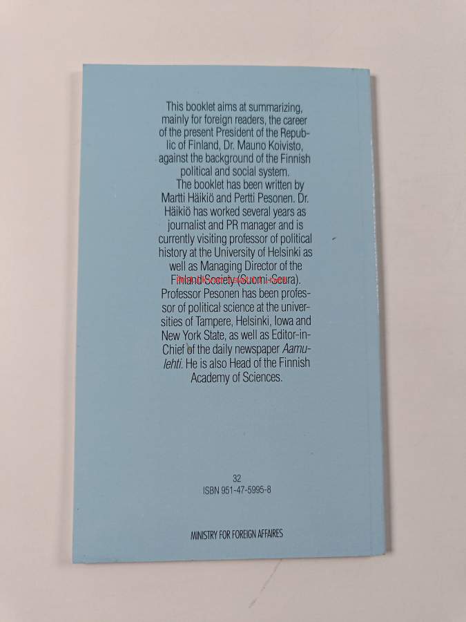 Muu(t) tekijä(t): Pertti Pesonen, Hannu HimanenMerkinnät: omistajamerkintä (tarra)Alkuteos: Presidentti Koivisto Suomen politiikassa.Asiasanat: ulkopolitiikka, presidentit, poliittiset järjestelmät, politiska system, presidenter, utrikespolitik