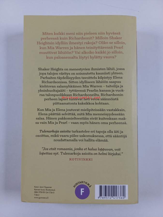 Muu(t) tekijä(t): Sari KarhulahtiAlkuteos: Little fires everywhereAsiasanat: naiset, ihmissuhteet, äitiys, perheet, perhesalaisuudet