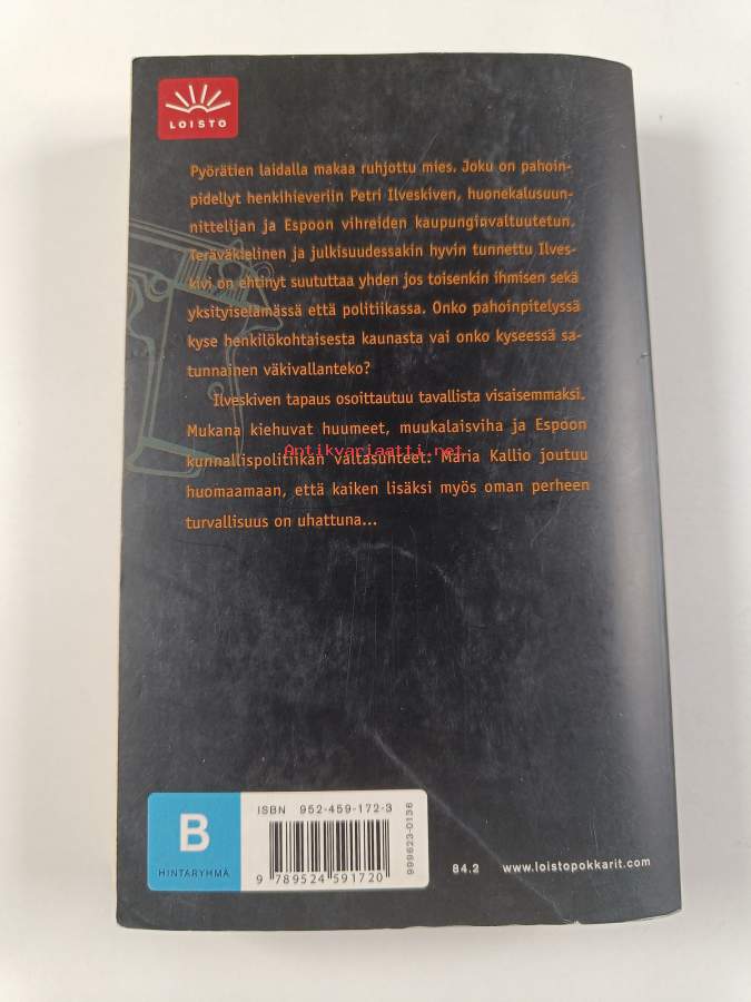 Hyvä. Hieman käytön jälkeä kansissa, selkämyksessä hieman vinoutta, selkämyksessä lukutaittumaa