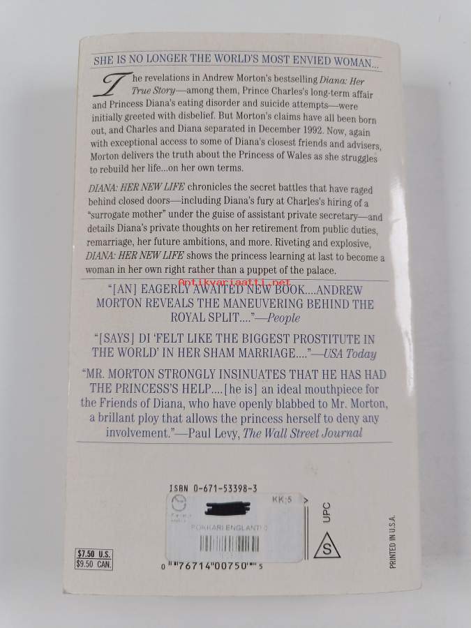 Diana, Walesin prinsessa lähikuvassa, 1992. 1. painos.