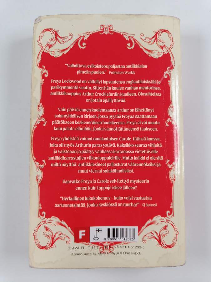 Sarja: Antiikin metsästäjät 1Alkuteos: The Antique Hunter's Guide to MurderAsiasanat: huumori, antiikkiesineet, murha, kaunokirjallisuus, kartanot, rikokset, väärennökset, jännityskirjallisuus