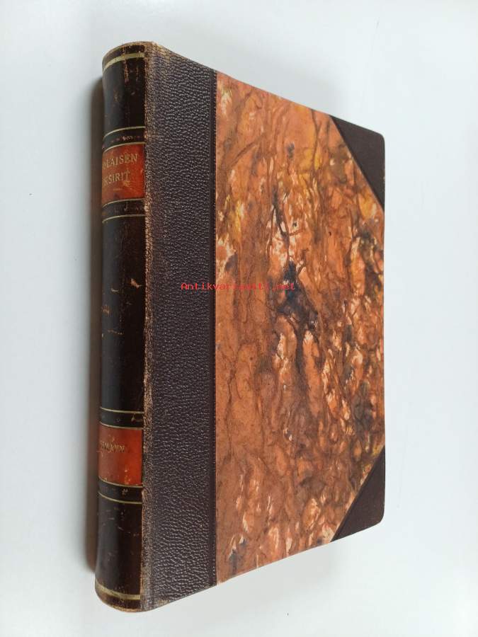 Hyvä. Tarkempi kuntoluokka: K3+ ; Hieman kulumaa kansissa, jälkisidos (aikalaissidos), selkämyksessä hieman vinoutta