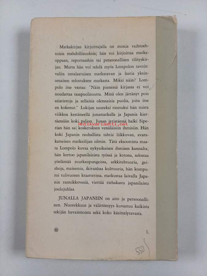 Hyvä. Tarkempi kuntoluokka: K3- ; Hieman kulumaa reunoilla ja kulmissa, selkämyksessä hieman vinoutta, selkämyksessä lukutaittumaa. Kansipaperin kunto: joitain repeämiä/kulumaa