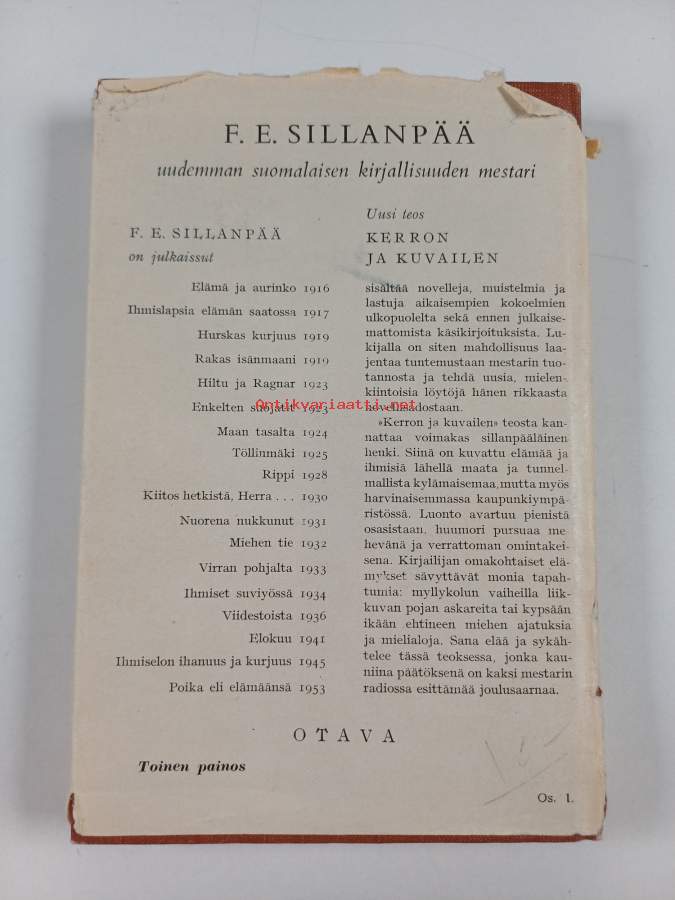 Hyvä. Tarkempi kuntoluokka: K3- ; Pientä kulumaa, selkämyksessä hieman vinoutta. Kansipaperin kunto: repeämiä/kulumaa