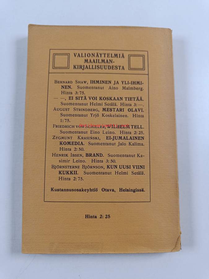 Hyvä. Tarkempi kuntoluokka: K3- ; Hieman tahraisuutta, hieman kulumaa, selkämyksessä hieman vinoutta, selkämyksessä lukutaittumaa