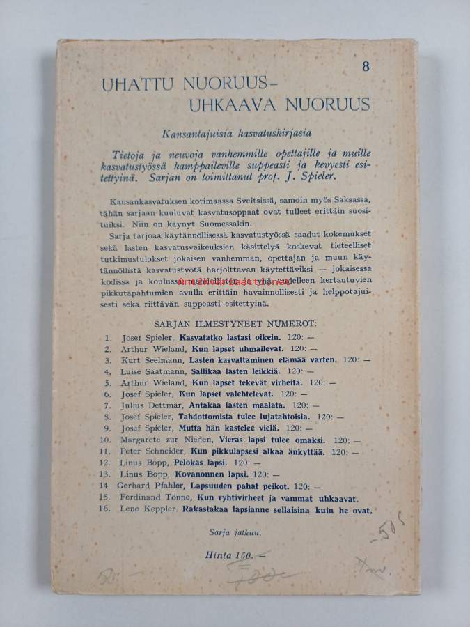 Muu(t) tekijä(t): Eeli E. AuttiSarja: Uhattu nuoruus - uhkaava nuoruus, Kansantajuinen kasvatuskirjasarja 15Alkuteos: Wenn Haltungsfehler und Gebrechen drohen