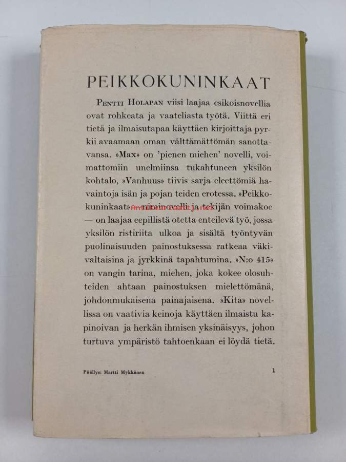 Hyvä. Tarkempi kuntoluokka: K3- ; Hieman kulumaa, hieman taipumaa kansissa, selkämyksessä hieman vinoutta. Kansipaperin kunto: repeämiä/kulumaa