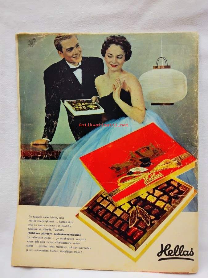 Ilmestynyt 1.12.1956,40-vuotisjuhlanumero,100s., kansissa hiukan kulumaa ja pientä rispaumaa, yhdellä sivulla merkintöjä, runsas kuvitus,sisällys mm. sarjakuvat Matti Melkonen, Helmi ja Heikki,Kolmas maailmansota,Kardinaali Mindszenty onnittelee Eisenhoweria,40 vuotta Suomen Kuvalehteä 45 sivua, kuvia jokaiselta vuodelta, Turun Yliopisto, tiedon ikkuna,Tamminiemen arkea, Urho Kekkonen,Olemmeko sairas kansa?, Melbournen olympialaisten ensimmäinen kisaviikko, Marskin tyttäret Sophie ja Anastasia Mannerheim, Topias: Pimeneviä aamuja