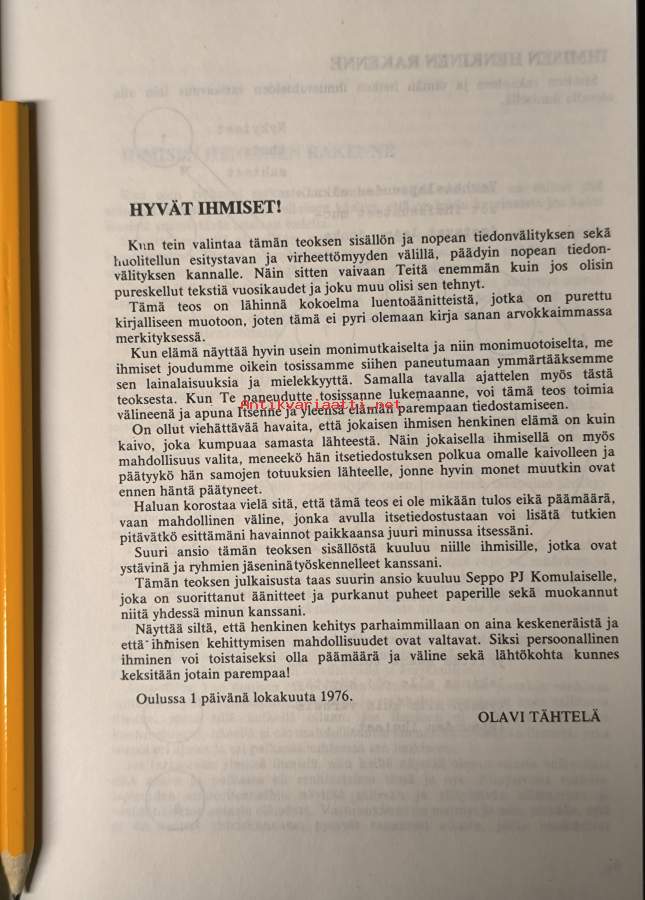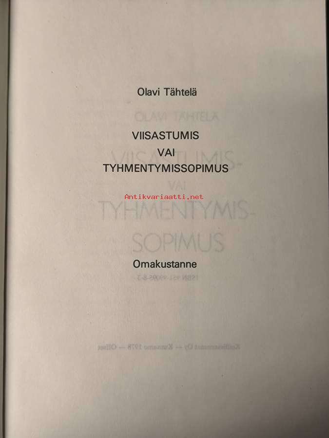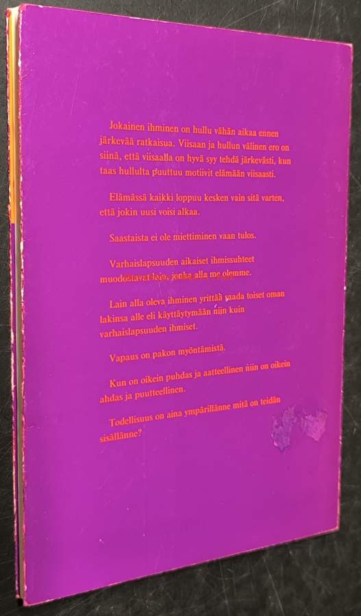 "Kun on oikein puhdas ja aatteellinen, niin on oikein ahdas ja puutteellinen"- lainaus takakannesta. : harvinaisesti saatavilla oleva teos.