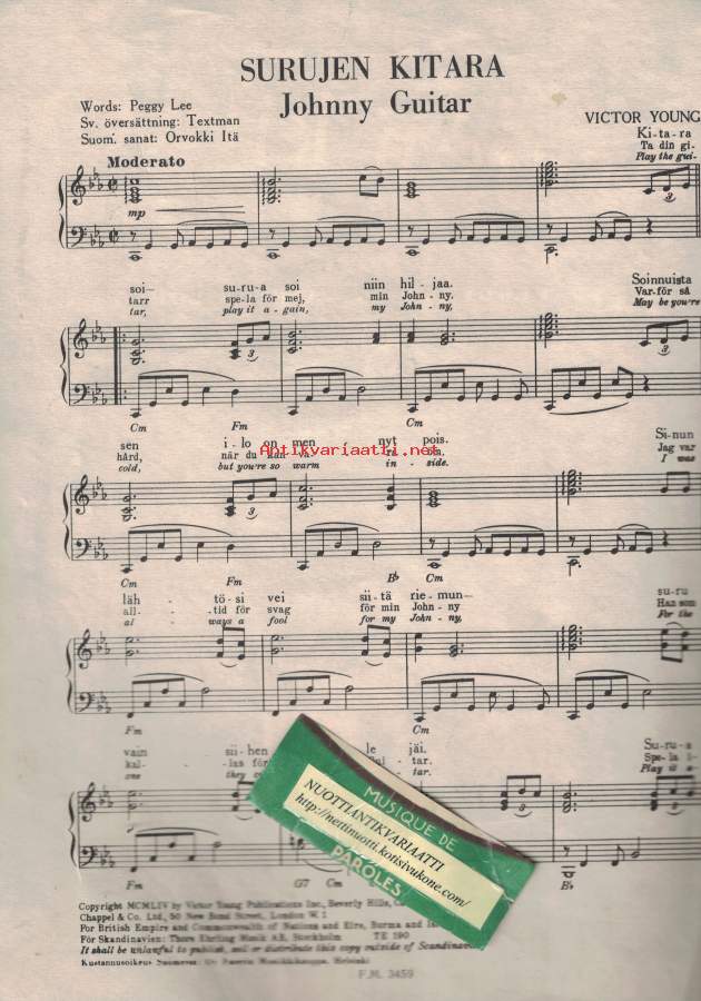 Surujen kitara - Johnny guitar -nuotit