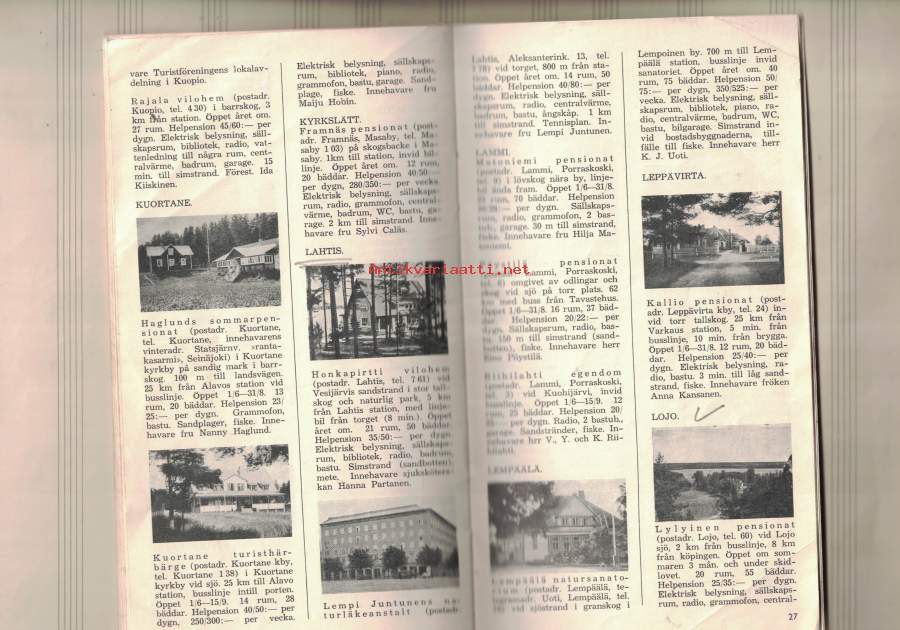Turistföreningen i Finland: Pensionat - Vilohem - Kurorter 1938