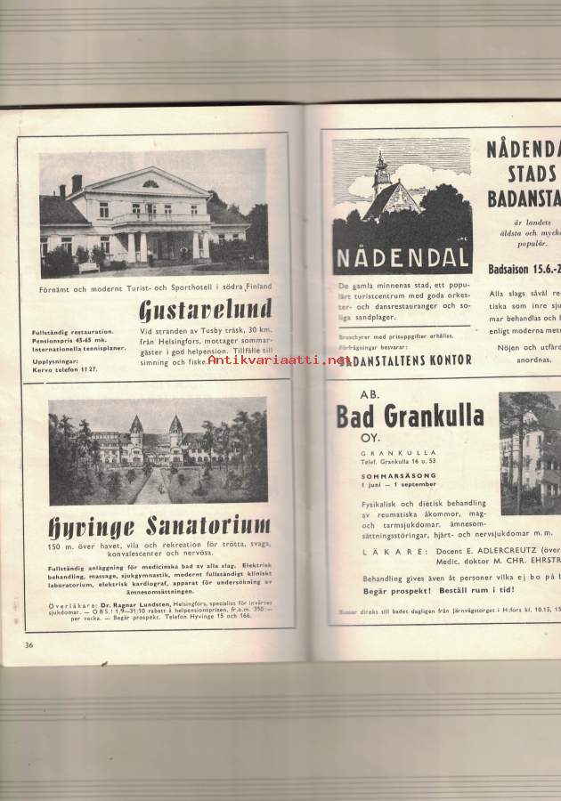 Bad- och Kuranstalter i Finland 1928; Heinola stads Badanstalt, Bad-Lovisa, Nådendals Badanstalt och Havsbad (A.B. Nådendals Bad - Naantalin Kylpy O.Y.)...