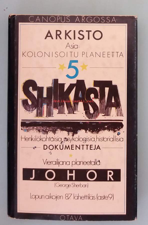 Teos kuvaa Maata (nimeltään Shikasta) kosmisen sivilisaation näkökulmasta. Canopuksen lähettiläs Johor tarkkailee planeetan kehitystä ja rappeutumista, jossa ihmiskunta ajautuu sotien, kaaoksen, eriarvoisuuden ja henkisen taantumisen kierteeseen. Dimensiot 21 ¤ 14 cm.