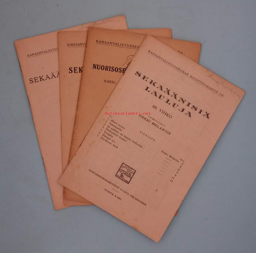 3 kpl Sekaäänisiä lauluja + 1 kpl Nuorisosekakuorolauluja. ( Nuotit sanoituksineen, 20-luku )