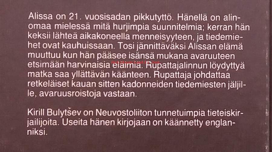 Alissa on avaruusmatkailijan tytär, joka päätyy mukaan seikkailuun planeetalta toiselle.Hän kohtaa outoja olentoja, ratkaisee pulmia ja joutuu vaarallisiin tilanteisiin..... Dimensiot 20 ¤ 13 cm.