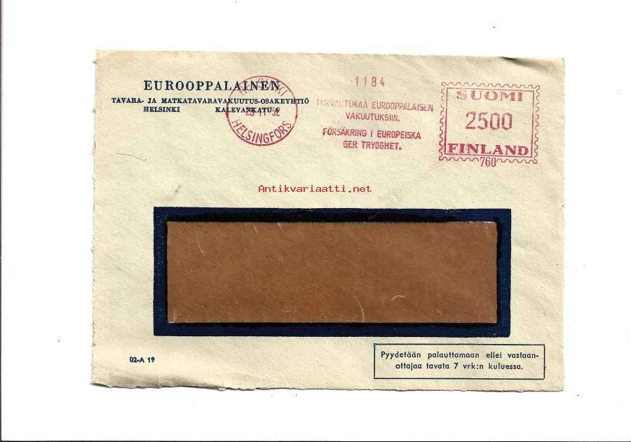 Eurooppalainen Tavara ja matkavakuutus Oy 1952 firmakuori