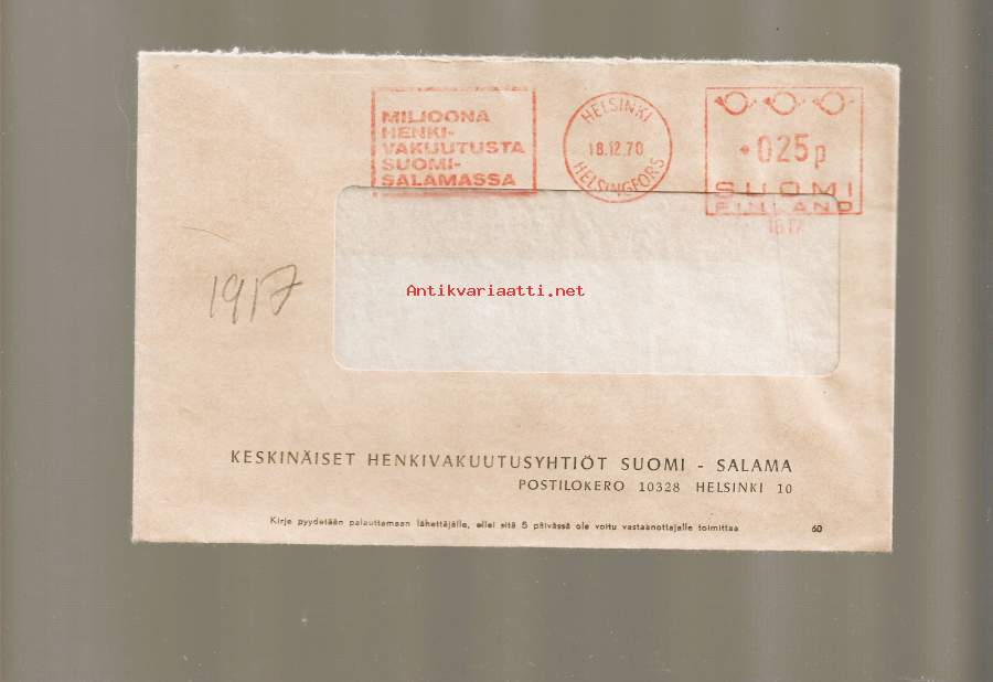 Keskinäinen Henkivakuutusyhtiö Suomi - Salama 1970 firmakuori