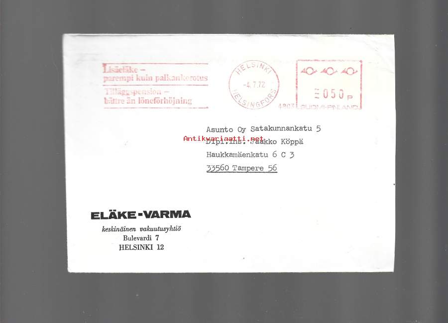 Eläke Varma Keskinäinen Vakuutusyhtiö 1972 firmakuori