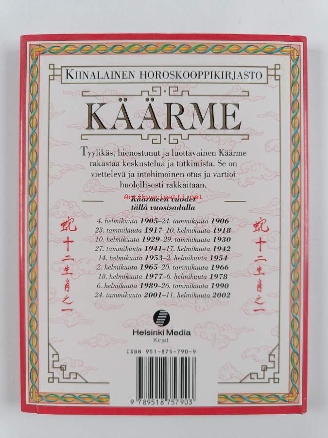 Muu(t) tekijä(t): Riitta ValajärviSarja: Kiinalainen horoskooppikirjastoAlkuteos: The Chinese horoscopes libraryAsiasanat: horoskoopit, kiinalainen horoskooppi
