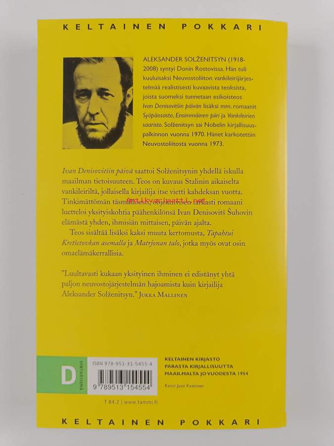 Muu(t) tekijä(t): Markku LahtelaSarja: Keltainen pokkariAlkuteos: Odin den' Ivana DenisovičaAsiasanat: arkielämä, vankileirit, psykologiset romaanit