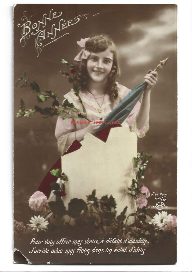 Ranskalainen ensimmäisen maailmansodan aikainen -, lippupostikortti postikortti kulkenut nyrkkipostissa