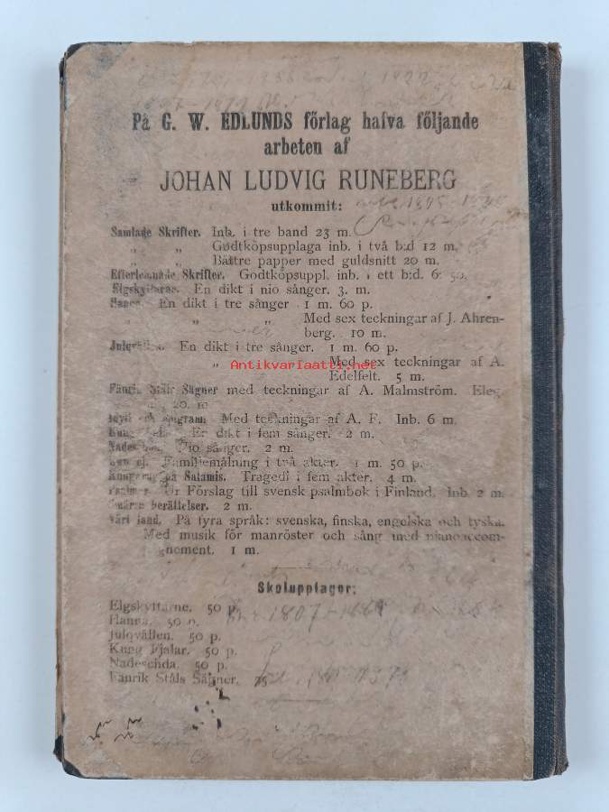 Lärobok i Räknekonsten Med Talrika Öfning-Exempel...Lämpad, efter det i finland gällande myntsystemet, till Skolornas behof, Helsingfors 1859, tryckt hos H.G. Friis