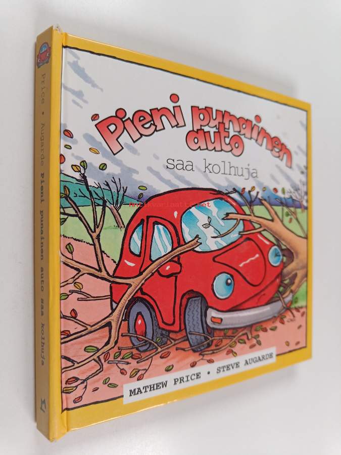 Pieni punainen auto saa kolhuja