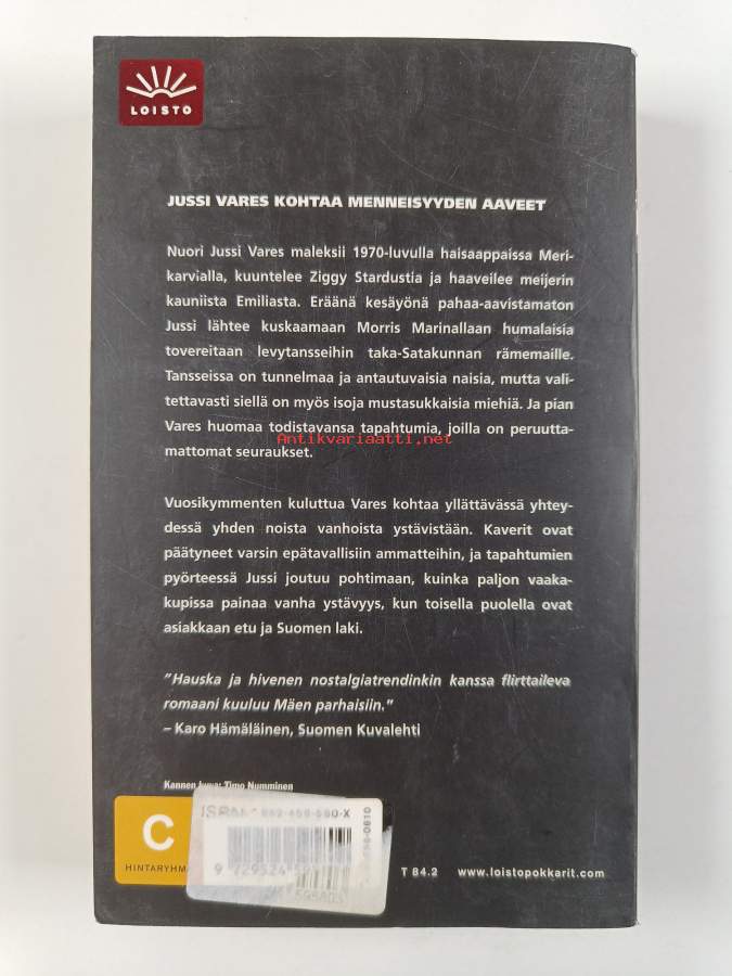 Hyvä. Tarkempi kuntoluokka: K3+ ; Hieman kulumaa kansissa, takana hintalapun jäämää, selkämyksessä kevyttä lukutaittumaa