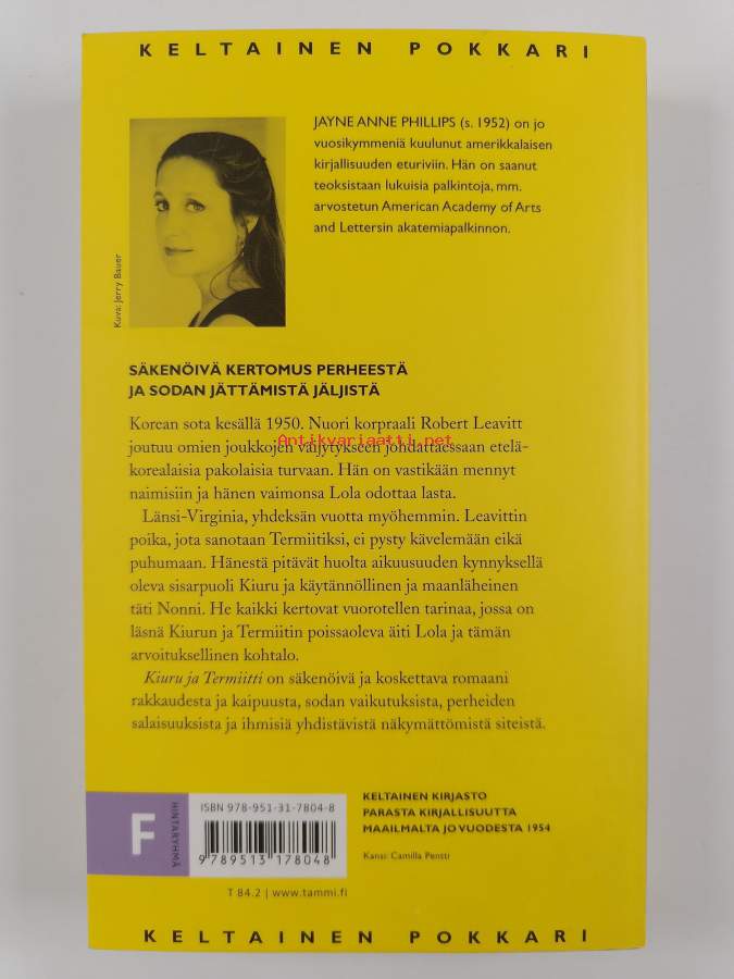 Muu(t) tekijä(t): Kersti JuvaMerkinnät: omistajamerkintäSarja: Keltainen pokkari 71; BonAlkuteos: Lark and Termite.Asiasanat: elämäntapa, kaupungit, ihmissuhteet, vammaiset, sotilaat, selviytyminen, tulvat, uusperheet, vammaisuus, näkökulma, huolenpito, menetys, hylkäys, perhesalaisuudet, psykologiset romaanit, perheromaanit, Korean sota, sisarusrakkaus