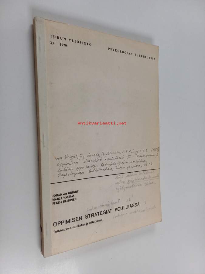 Muu(t) tekijä(t): Johan von Wright, Pekka Reijonen ym.Merkinnät: omistajamerkintä leikattu pois etulehden ylälaidastaSarja: Oppimisen strategiat kouluiässä 1; Psykologian tutkimuksia / Turun yliopisto 33