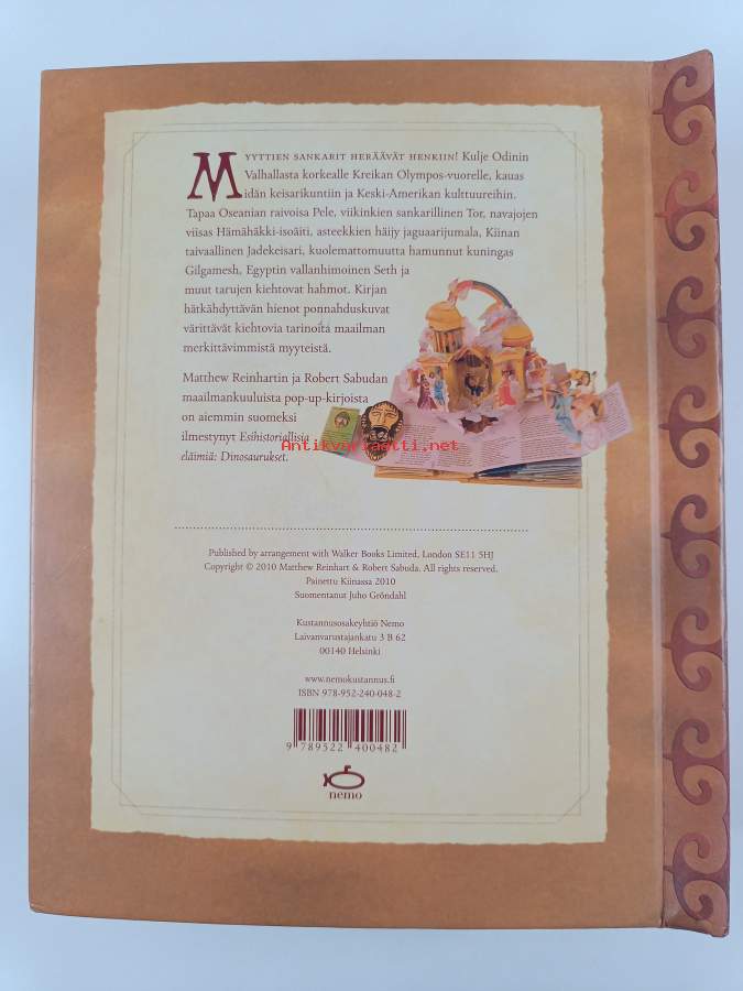 Sarja: Pop-up-kirjastoAlkuteos: Gods and heroesAsiasanat: myytit, sankarit, jumalat, hirviöt, pop-up, näyttämökirjat, ponnahduskirjat