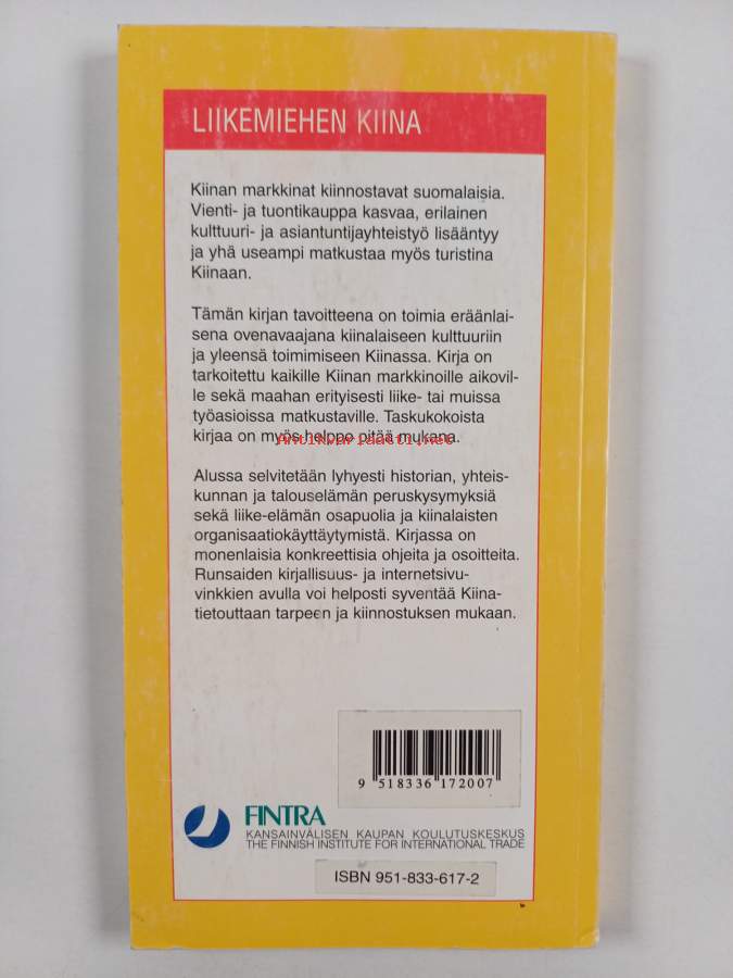 Sarja: Fintra-julkaisu nro 130Asiasanat: yhteiskuntakuvaus, käytösoppaat, matkaoppaat, käytösoppaat : Kiina, tapakulttuuri : Kiina