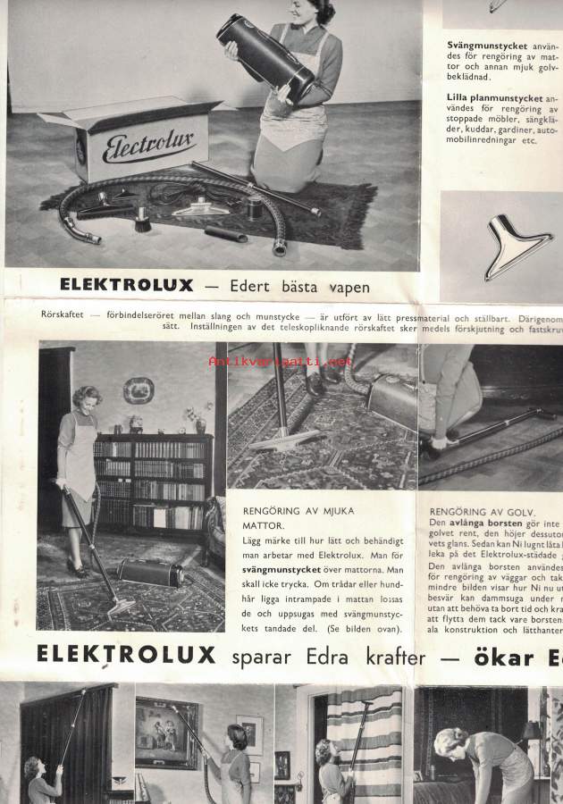 Pölynimuri esite 1930-luku. Haitarimalli avautuu yhdeksi suureksi esitteeksi.- Pieni Helposti kuori