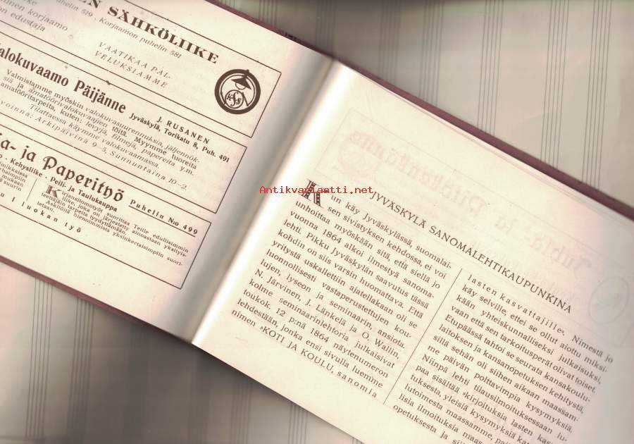 Jyväskylän kaupungin kartta ja liikekalenteri 1927