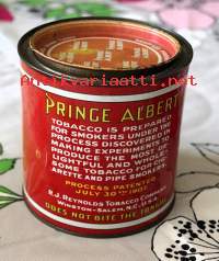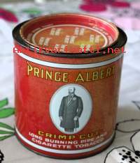 Prince Albert Crimp Cut pipe and cigarette tobacco - tyhjä tupakka-aski tupakkarasia peltiä 11x11 cm